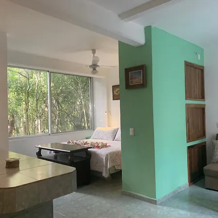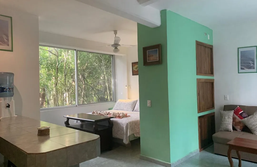 Studio With Swimming Pool At 12 M Height Over Jungle van 36 m^2 bevindt zich op 3-km afstand van Cenotes Dos Ojos en biedt wifi. Het 1-slaapkamer appartement biedt een sauna en een buitenzwembad voor gasten om van te genieten tijdens hun verblijf.